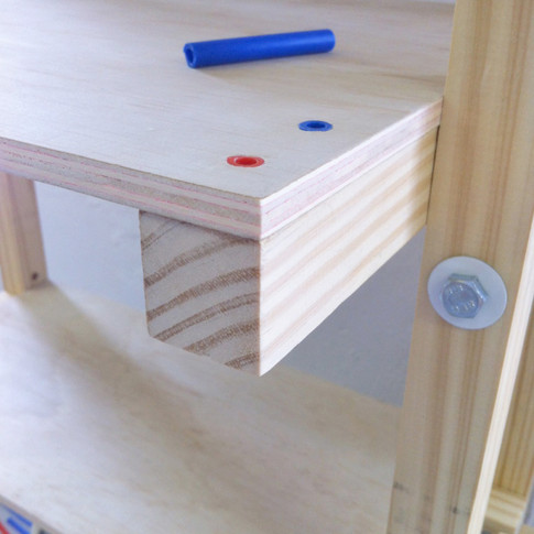 Exploring the potential of one building method that can be played with to design many different products was a highlight of the process. At this stage we have designed and installed a modular shelving unit with flip out tables and peg board, a roll out reading lawn, a table (6 seater) and crate stools.